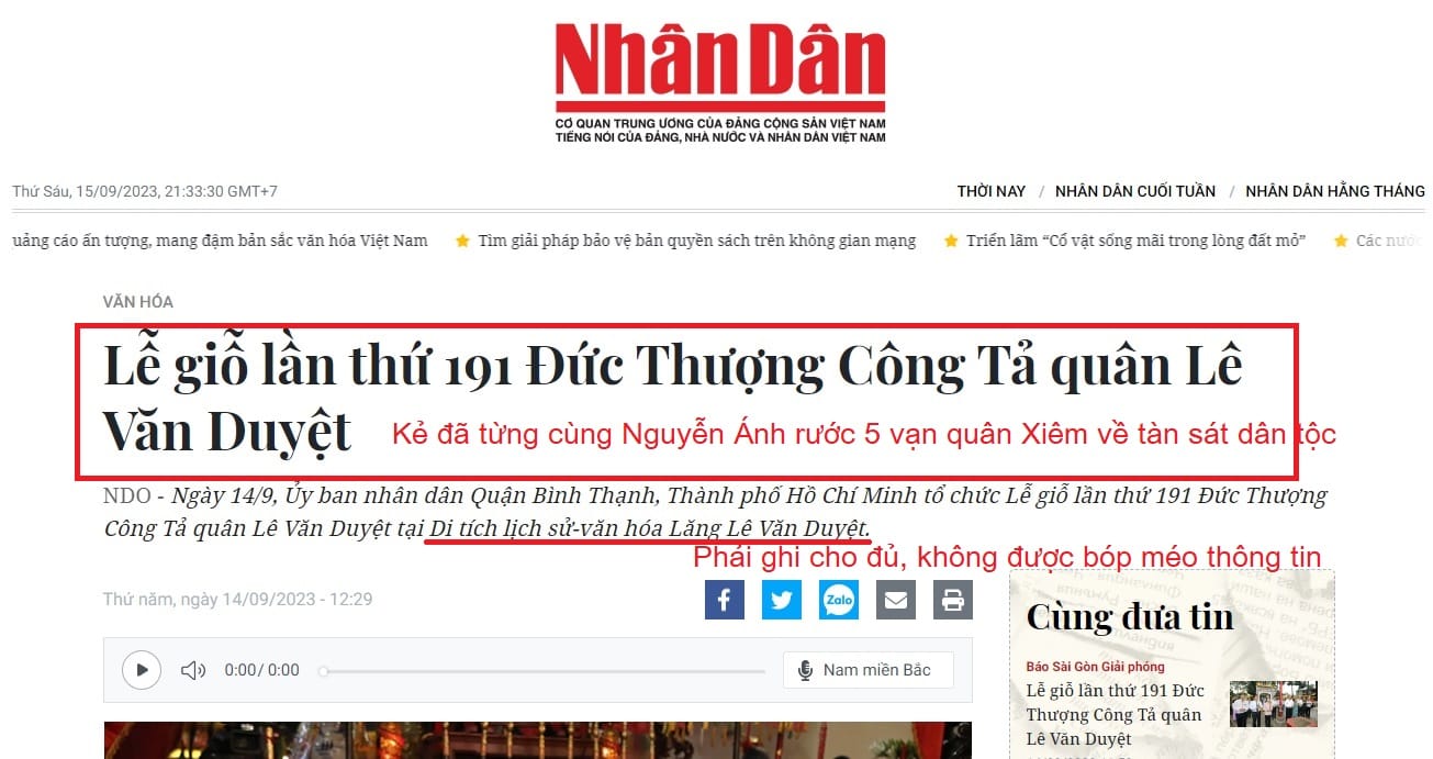 Phải chăng đây là tôn chỉ mục đích mới của Báo Nhân Dân? Và tên gọi này còn đúng là tờ báo của Nhân dân nữa hay không khi toàn thể Nhân dân Việt Nam phản đối việc vinh danh những kẻ đã quỳ lạy ngoại bang, rước giặc ngoại xâm vào tàn sát dân tộc Việt Nam?