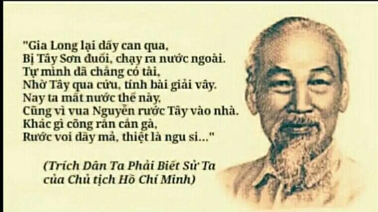 Sinh thời, Chủ tịch Hồ Chí Minh trong bài thơ Dân ta phải biết sử ta đã ghi rõ: “Nay ta mất nước thế này; Cũng vì vua Nguyễn rước Tây vào nhà; Khác gì cõng rắn cắn gà; Rước voi dầy mả, thiệt là ngu si.”